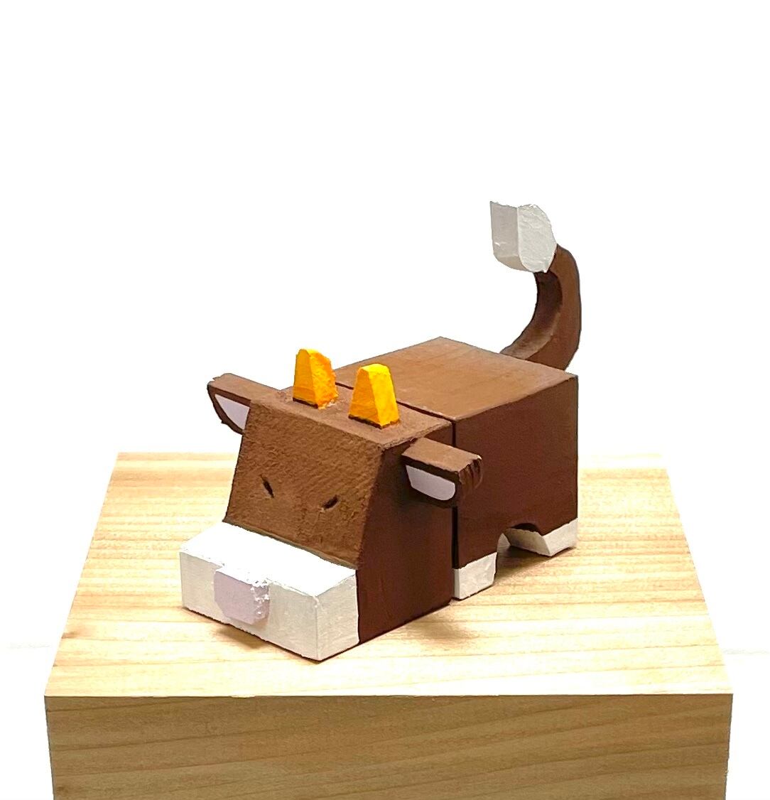 アタマとカラダの位置を変えることで様々な表情を見せてくれます。広い草原で暮らしているのんびりした牛をシンプルに表現してみました。実際に触れてみると愛着が湧くこと間違いなし。無表情ですが何か語り掛けているようです。飾り方は自由。自分好みのポーズで楽しんでください。お迎えいただけば、いつでも癒しと笑顔の時間が過ごせます。是非ご検討ください。
