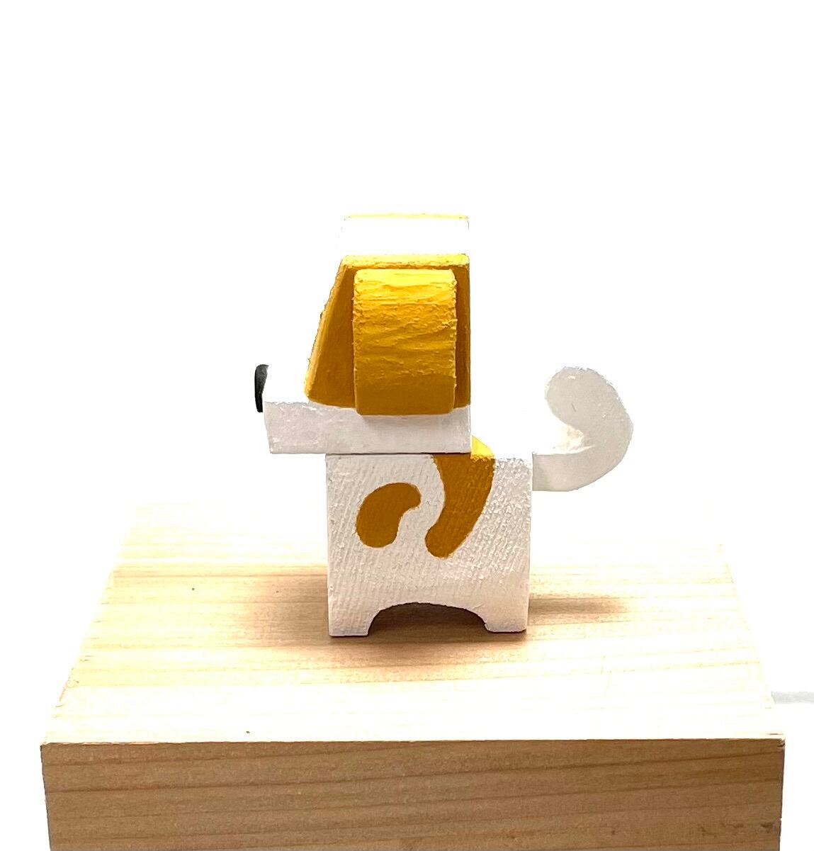 トイプードル/パーティカラーです。頭は少し大きめ。からだは下に絞り込み、小さくてかわいらしい小型犬の雰囲気を演出してみました。ムクの中で目が丸い犬は初登場です。